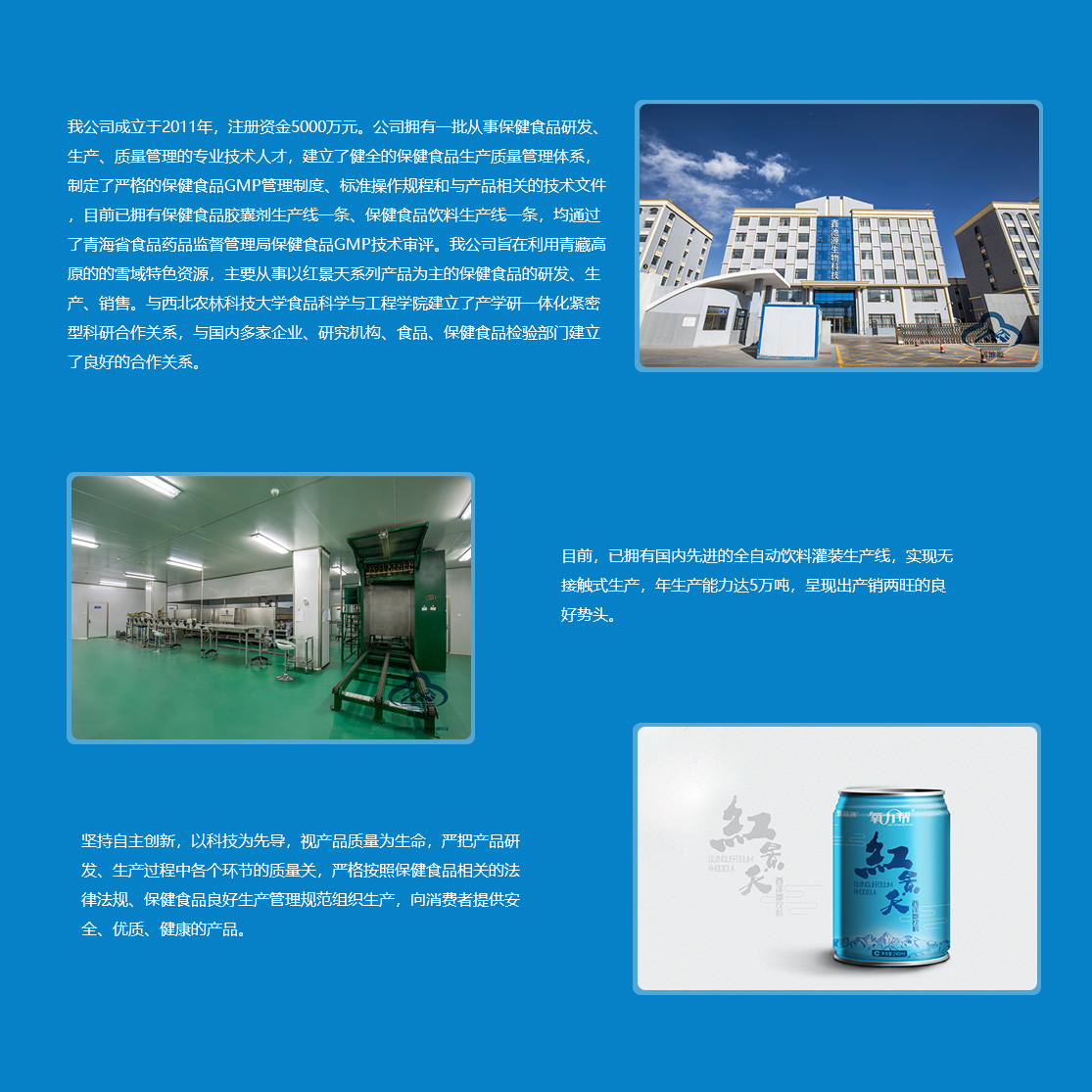 鑫池源公司立足于青海省綠色環(huán)保無污染的高品質紅景天資源,以西北農林科技大學食品科學與工程學院和青海格拉丹東藥業(yè)有限公司為技術依托,主要從事紅景天、紅枸杞、黑枸杞等高原生態(tài)植物資源的研究開發(fā)和深加工,產品包括“景胨”牌紅景天西洋參保健飲品、紅景天口服液、紅景天膠囊等系列產品。